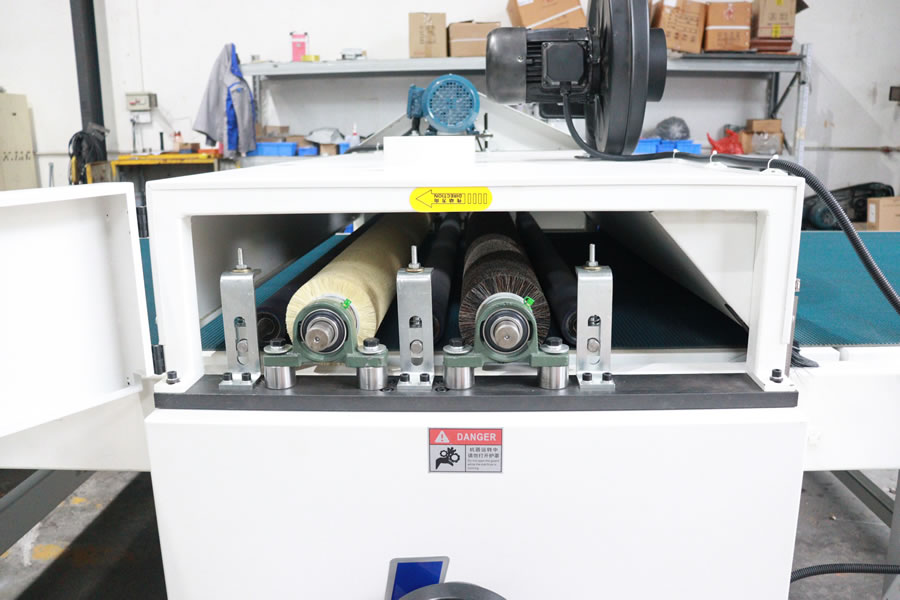 本機適用于打磨、拋光后的木板表面灰塵的清理和收集。 特點: 1)離子鋁棒:具有很強的離子風,能去除物體表面的靜電、異物和灰塵。屬于工業(yè)級,適用于平面物體的初靜電除塵 2)墨西哥植物劍麻毛刷輥:第一道砂輥是墨西哥植物劍麻毛刷輥,除塵效果好。 3)天然馬毛刷輥:第二道砂輥為天然馬毛刷輥,柔軟抗靜電,除塵效果好。