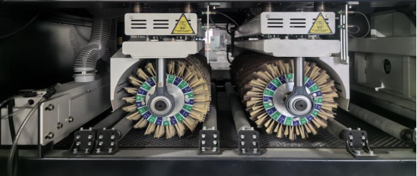 ·一體式組合砂光:前面一組高柔性琴鍵平砂,不易砂穿板面,用來清除被涂表面的灰塵顆粒,增強涂裝表面的平整度,減少油漆的消耗,有效的提高油漆表面的附著力;后面兩組異型砂輥用來深度精細拋光。